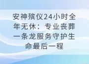 安神殡仪24小时全年无休:专业丧葬一条龙服务守护生命最后一程当生命走向终点,如何让告别充满尊严与温度?这是每一个家庭在面临亲人离世时最迫切的需求。作为深耕殡葬服务行业的专业机构,安神殡仪以“丧葬一条龙4008341834连锁服务”为核心,用24小时全年无休的坚守,为家属提供从临终关怀到后续纪念的全流程支持,让告别不再仓促,让哀思得以安放。一、一条龙服务:告别繁琐,专注情感寄托传统殡葬流程中,家属需